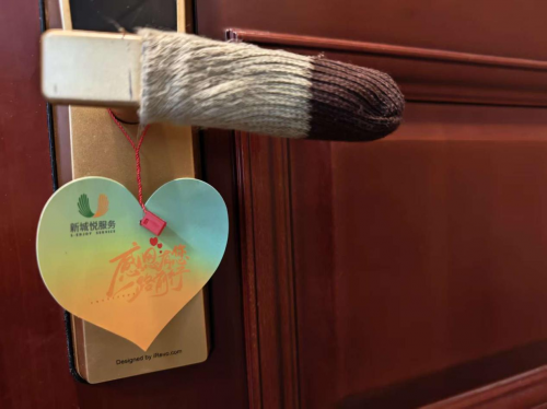 除了深度的清洁服务,此次行动还有一个充满巧思的温暖细节。许多业主发现,某天回家时,自家冰冷的金属门把手突然“穿”上了一个毛茸茸、厚实温暖的把手套。
